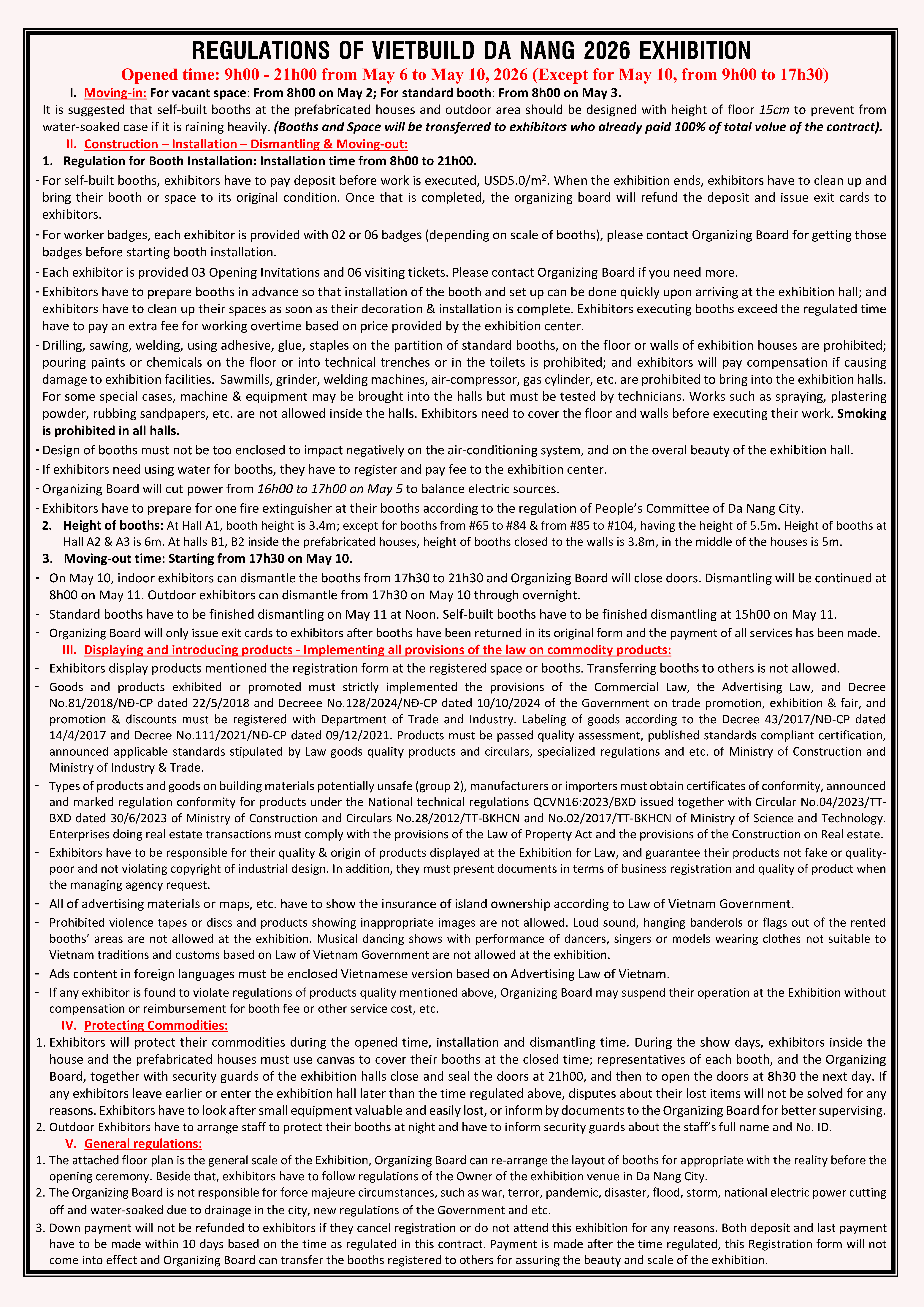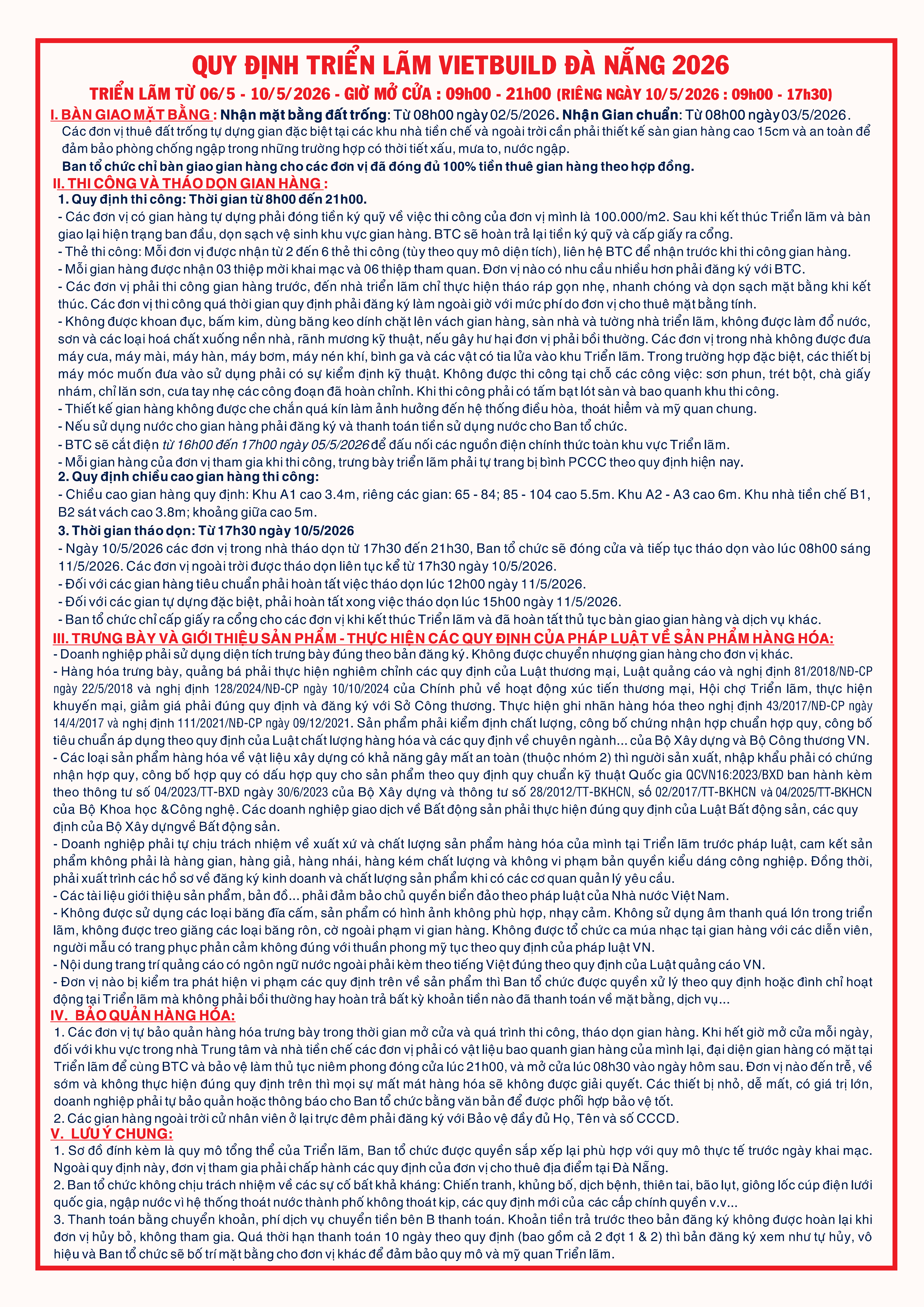 VIETBUILD ĐÀ NẴNG 2026Xây dựng – Vật liệu xây dựng – Giao thông - Bất động sản & Trang trí nội ngoại thất Thông Tin Triển Lãm 06/05/2026 - 10/05/2026 Trung Tâm Hội Chợ Triển Lãm Đà Nẵng - Số 09 Cách Mạng Tháng Tám, Phường Cẩm Lệ, TP. Đà Nẵng 1200 gian hàng Đăng Ký Bấm vào đây để đăng ký trực tuyến. Thư Mời Nội Dung Và Chương Trình Hoạt Động Sơ Đồ Quy định hội chợ - triển lãm Danh Sách Các Đơn Vị Tham Gia sơ đồ VIETBUILD ĐÀ NẴNG 2026 Danh sách các đơn vị tham gia trưng bày tại triển lãm sẽ được cập nhật trước Khai mạc Triển lãm một (01) ngày … đang cập nhật