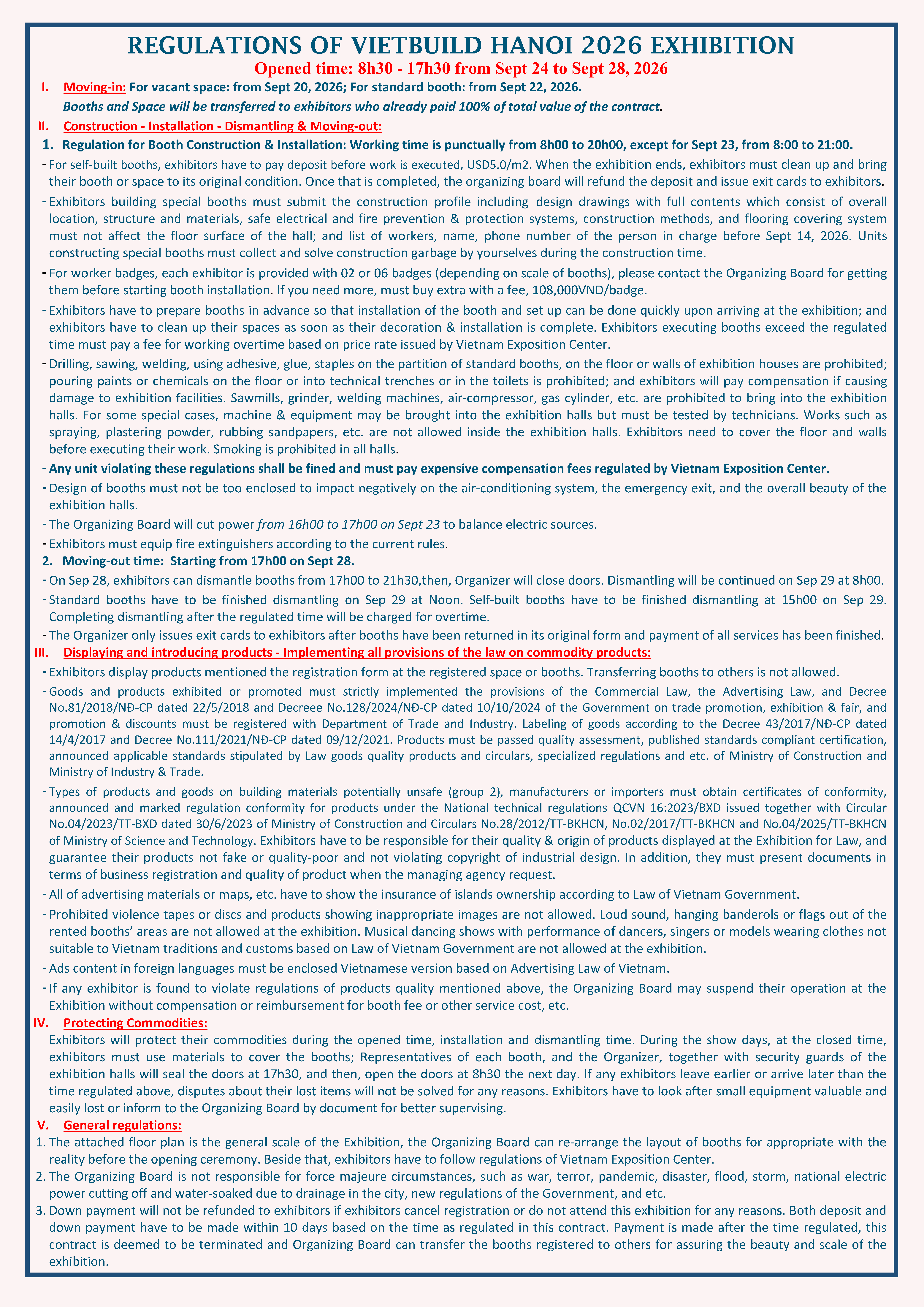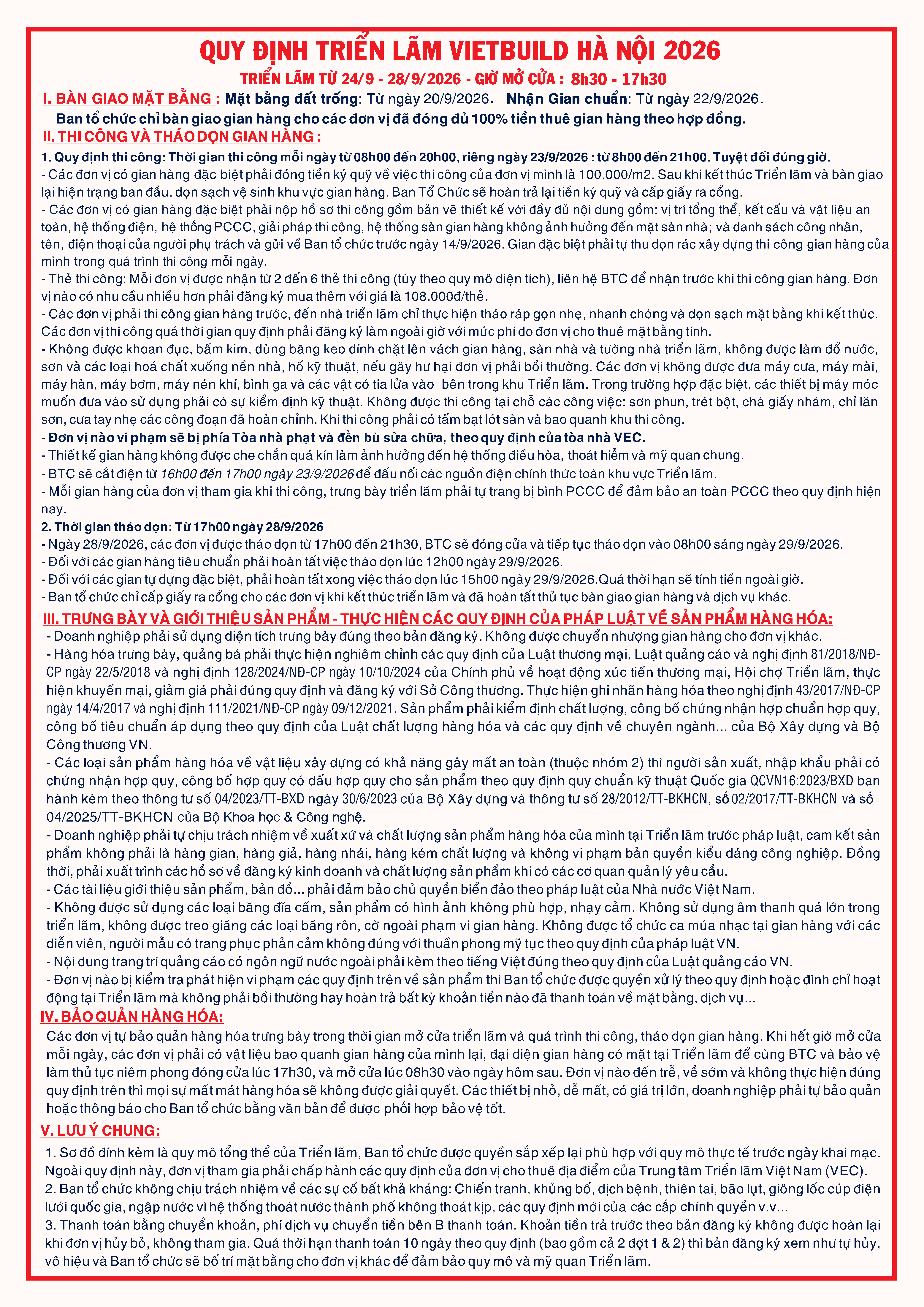 VIETBUILD HÀ NỘI 2026 – LẦN 2Trang trí nội ngoại thất – Bất động sản – Xây dựng & Vật liệu xây dựng Thông Tin Triển Lãm 24/09/2026 - 28/09/2026 Trung tâm Triển lãm Việt Nam - Vietnam Exposition Center (VEC) - Đường Cầu Tứ Liên, Xã Đông Anh, TP Hà Nội 2000 gian hàng Đăng Ký Bấm vào đây để đăng ký trực tuyến. Thư Mời Nội Dung Và Chương Trình Hoạt Động Sơ Đồ Quy định hội chợ - triển lãm Danh Sách Các Đơn Vị Tham Gia sơ đồ VIETBUILD HÀ NỘI 2026 - LẦN 2 Danh sách các đơn vị tham gia trưng bày tại triển lãm sẽ được cập nhật trước Khai mạc Triển lãm một (01) ngày … đang cập nhật