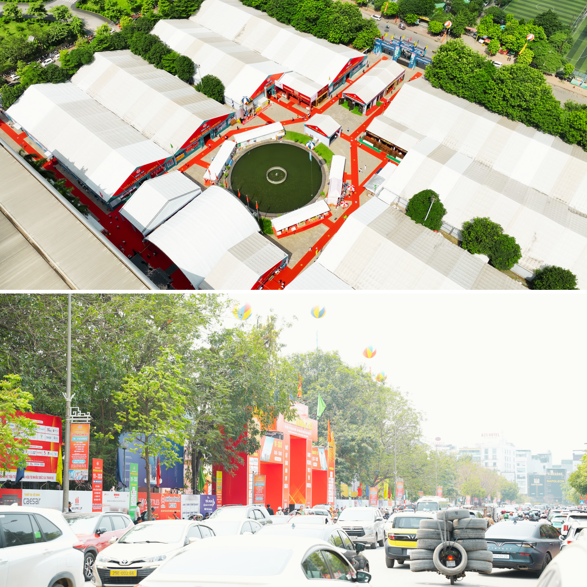 Khu vực triển lãm nhìn từ trên cao và phía trước Phố Đỗ Dức Dục.