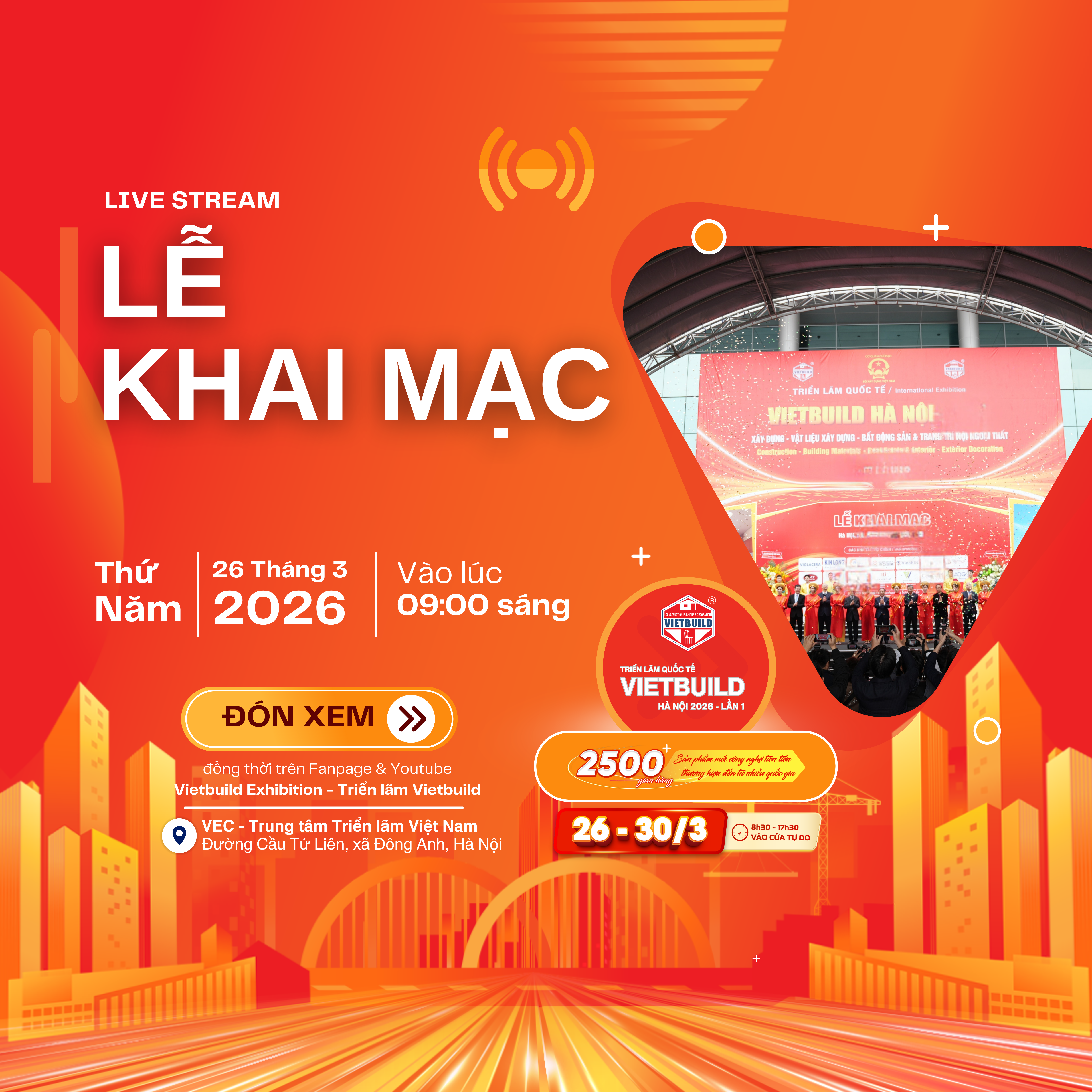 Lễ khai mạc Triển lãm Quốc tế VIETBUILD Hà Nội 2026 được tổ chức vào ngày 26/03/2026, với sự tham dự của đại diện các cơ quan quản lý, hiệp hội ngành nghề, doanh nghiệp và khách mời trong nước và quốc tế.
